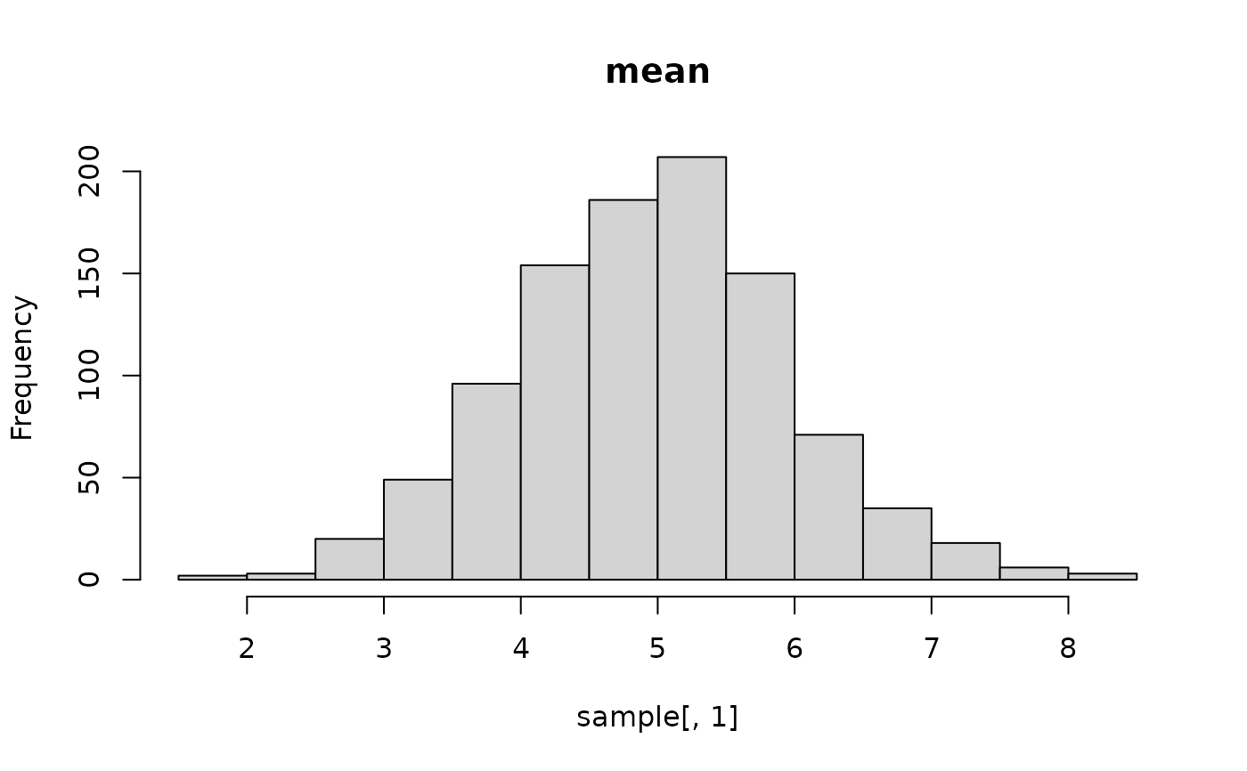 hist(sample[, 1], main = "mean")