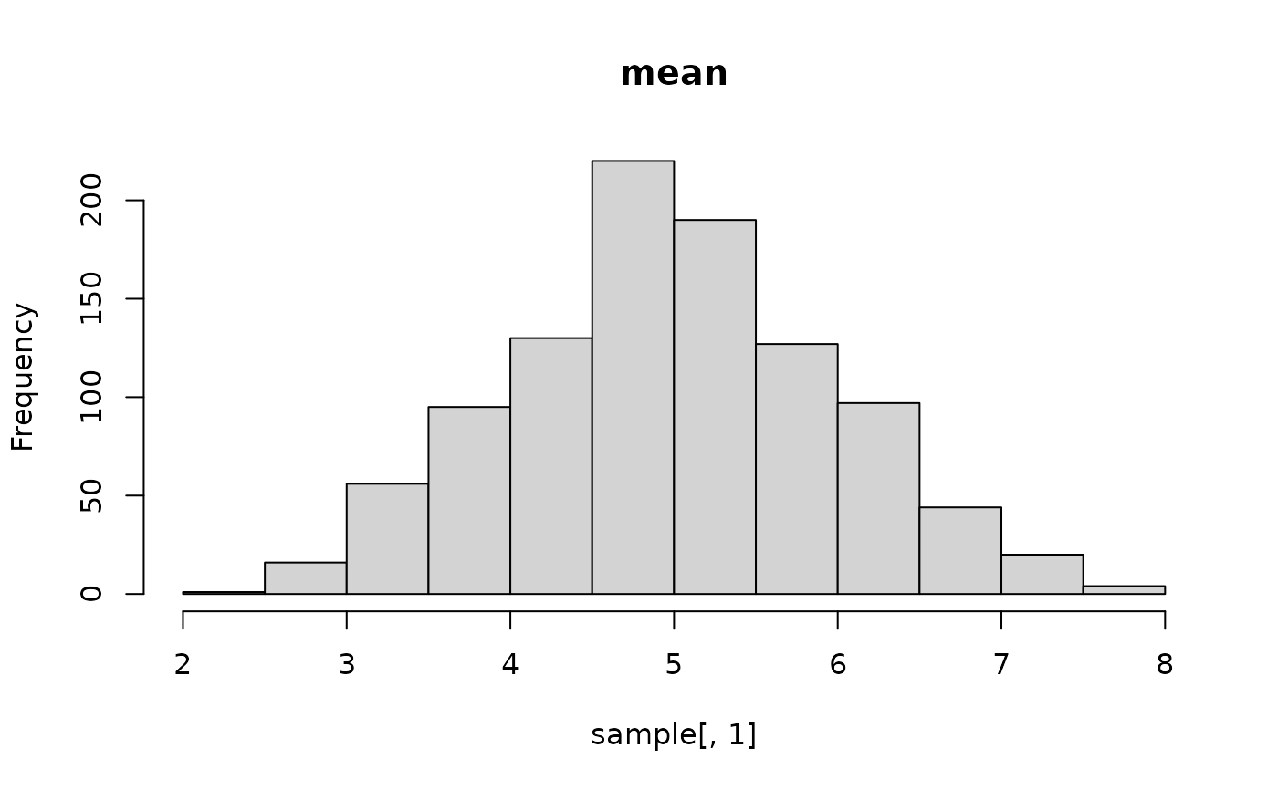 hist(sample[, 1], main = "mean")